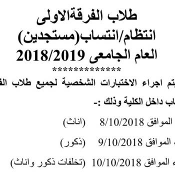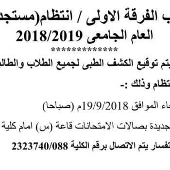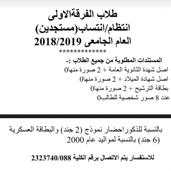 اعلان لطلاب الفرقة الأولى