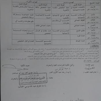 جدول الامتحانات التحريرية لطلاب الدراسات العليا (الفترة الصباحية)