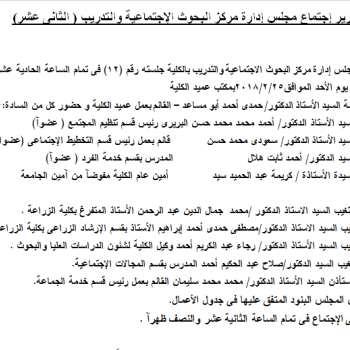 تقرير إجتماع مجلس إدارة مركز البحوث الإجتماعية والتدريب (الثانى عشر)