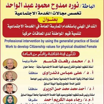 دعوة لمناقشة رسالة الدكتوراة المقدمة من الباحثة/ نوره ممدوح محمود