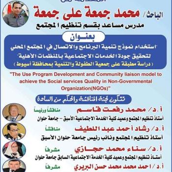 دعوة لمناقشة رسالة الدكتوراة المقدمة من الباحث/ محمد جمعة على جمعة
