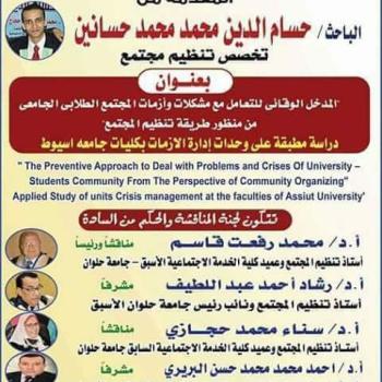 دعوة لمناقشة رسالة الدكتوراة المقدمة من الباحث/ حسام الدين محمد محمد