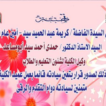تهنئة من السيدة الأستاذة/ امين عام الكلية