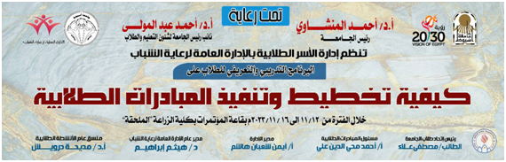 يأتي انعقاد المؤتمر الطلابي، تحت إشراف: الدكتور أحمد عبدالمولى نائب رئيس الجامعة لشئون التعليم والطلاب، والدكتور محمود عبد العليم نائب رئيس الجامعة لشئون خدمة المجتمع وتنمية البيئة، ورئيس المؤتمر، والدكتورة مديحة درويش منسق عام الأنشطة الطلابية ونائب رئيس المؤتمر، والدكتور محمد مصطفى حمد وكيل كلية التربية لشئون خدمة المجتمع وتنمية البيئة ومقرر المؤتمر.