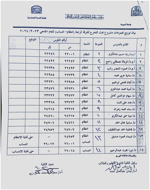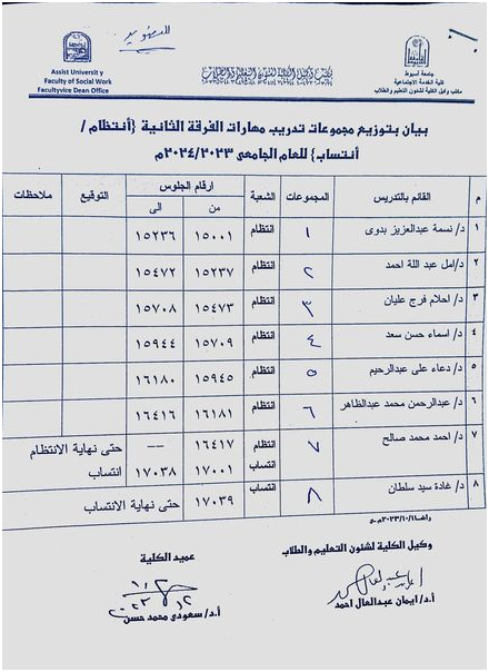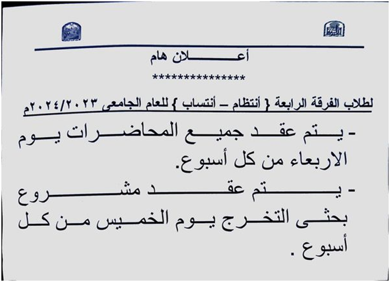 بيان بأسماء وأماكن التدريب الميداني للفرقة الثالثة للعام الجامعي ٢٠٢٣ / ٢٠٢٤م