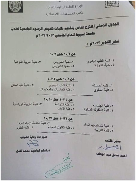 جامعة أسيوط تستقبل طلابها لبدء العام الدراسي الجديد 2024/2023 بمراسم تحية العلم