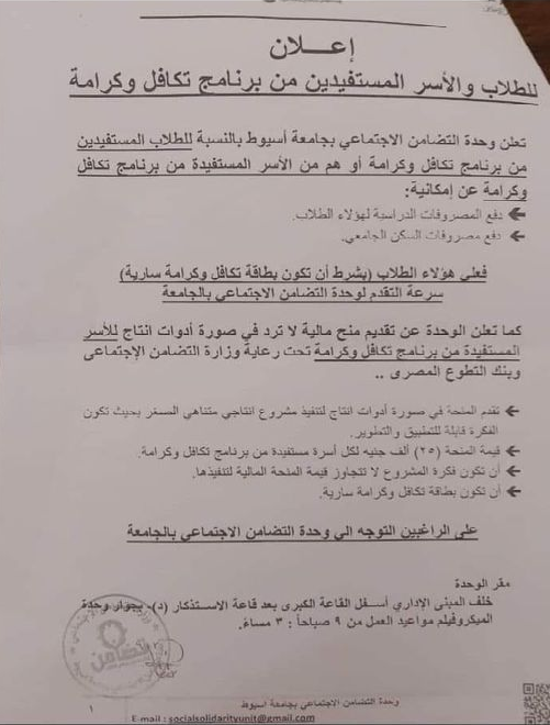كما نهيب بجميع الطلاب الراغبين في تقديم دراسة جدوي لمشروع ضمن مبادرة الطالب المنتج والطلاب المتقدمين للمبادرة لدي وحدة التضامن الاجتماعي ضرورة حضور هذه الورشة التي تعتبر شرطا اساسيا في النظر في الطلبات لتناولها الاسس والمقومات والمعايير التي سيتم قبول الطلبات بناء عليها.