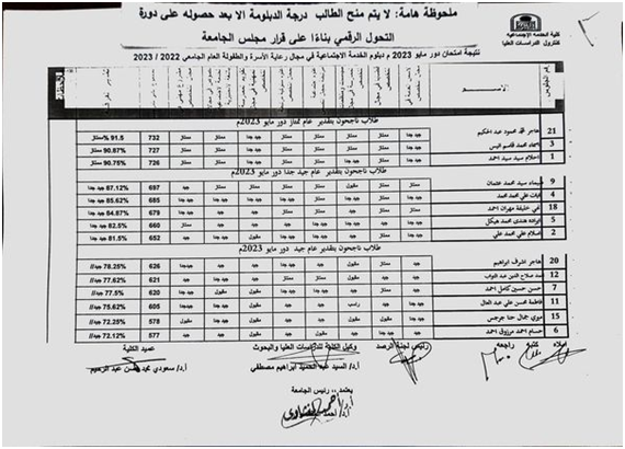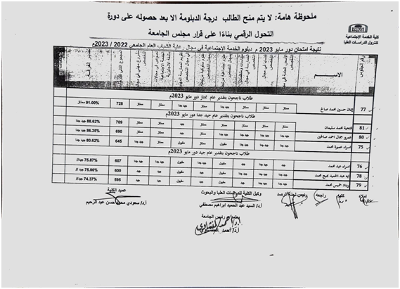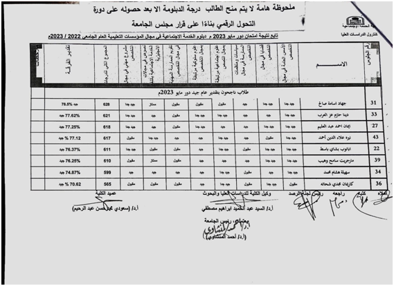 ظهور نتائج الفرقة الأولى كلية الخدمة الإجتماعية