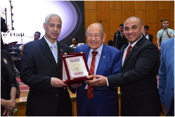 وفى الختام تم إهداء درع الجامعة لكل من الدكتور وسيم السيسي، واللواء أركان حرب عادل العمدة على المشاركة المتميزة فى احتفالات الجامعة بذكرى 30 يونيو .