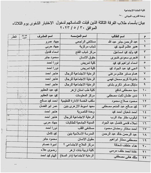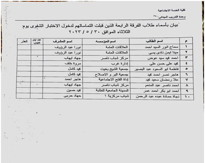 ملحوظة: الجماعة الرابعة فى الفوج الأول من رقم الجلوس ١٧٧٢١ إلى رقم الجلوس ١٧٩٦٠