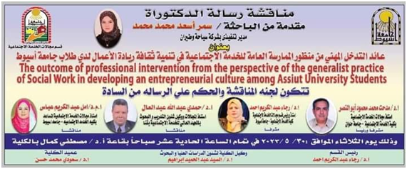 الدكتورة/ فريالة مصطفى لترقية سيادتها إلى درجة أستاذ مساعد بقسم خدمة الجماعة،