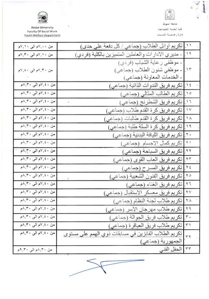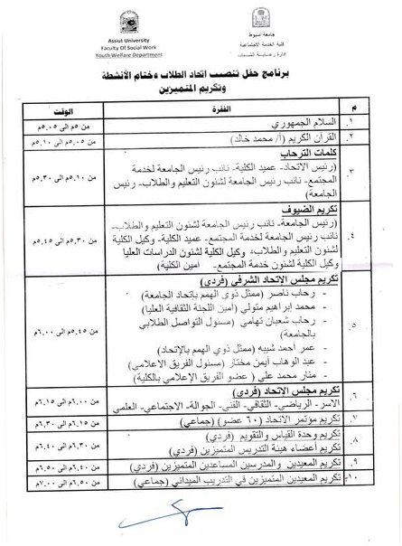جامعة أسيوط تشهد ختام الأنشطة الطلابية لكلية الخدمة الاجتماعية للعام الجامعي