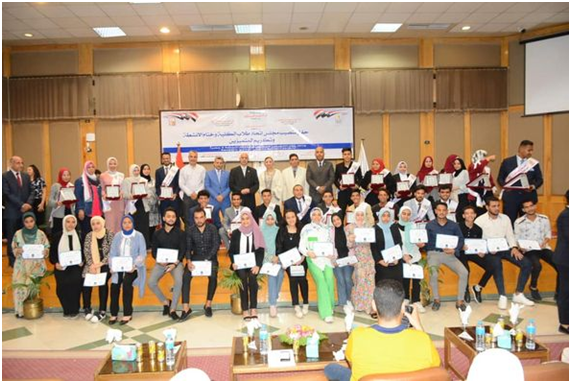ومن جانبه أشاد الدكتور أحمد المنشاوي رئيس الجامعة، بالدور الفعال لاتحاد طلاب الجامعة بوصفه حلقة الوصل الأساسية بين إدارة الجامعة وطلابها، فضلاً عن دوره في نشر الفكر الثقافي والتنويري من خلال مشاركاتهم المتميزة في مختلف الأنشطة الطلابية، مؤكداً على تسخير إمكانيات الجامعة من أجل خدمة الطلاب، وتأهيلهم علي نحو يصقل شخصياتهم، وينمي مواهبهم، ويعزز لديهم الشعور بالمسئولية.