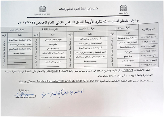 بيان الطلاب المنقطعين عن التدريب الميداني للفرقة الرابعة