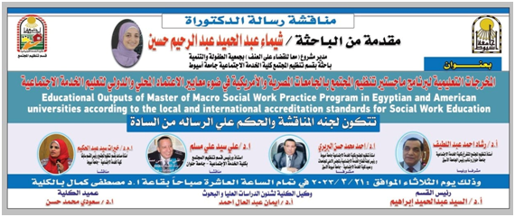 تحت رعاية الأستاذ الدكتور/ سعودي محمد حسن عميد كلية الخدمة الاجتماعية