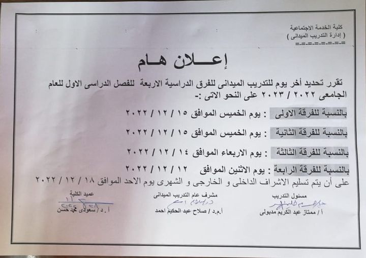 استكمالا لانشطة التدريب الميداني بكلية الخدمة الاجتماعية جامعة أسيوط داخل الموسسات الاجتماعية