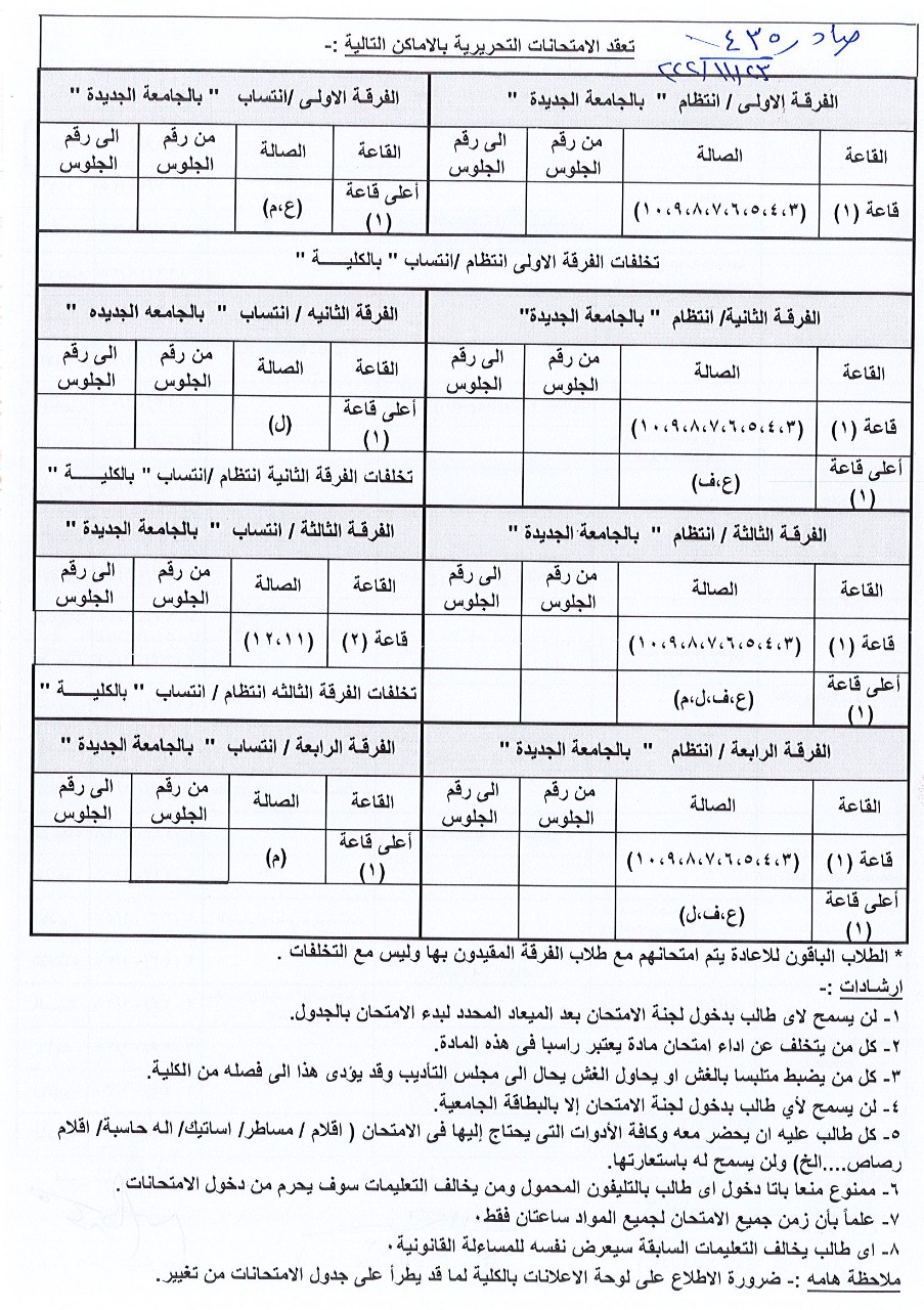 القوائم النهائية بأرقام الجلوس النهائية (قوائم الامتحانات)