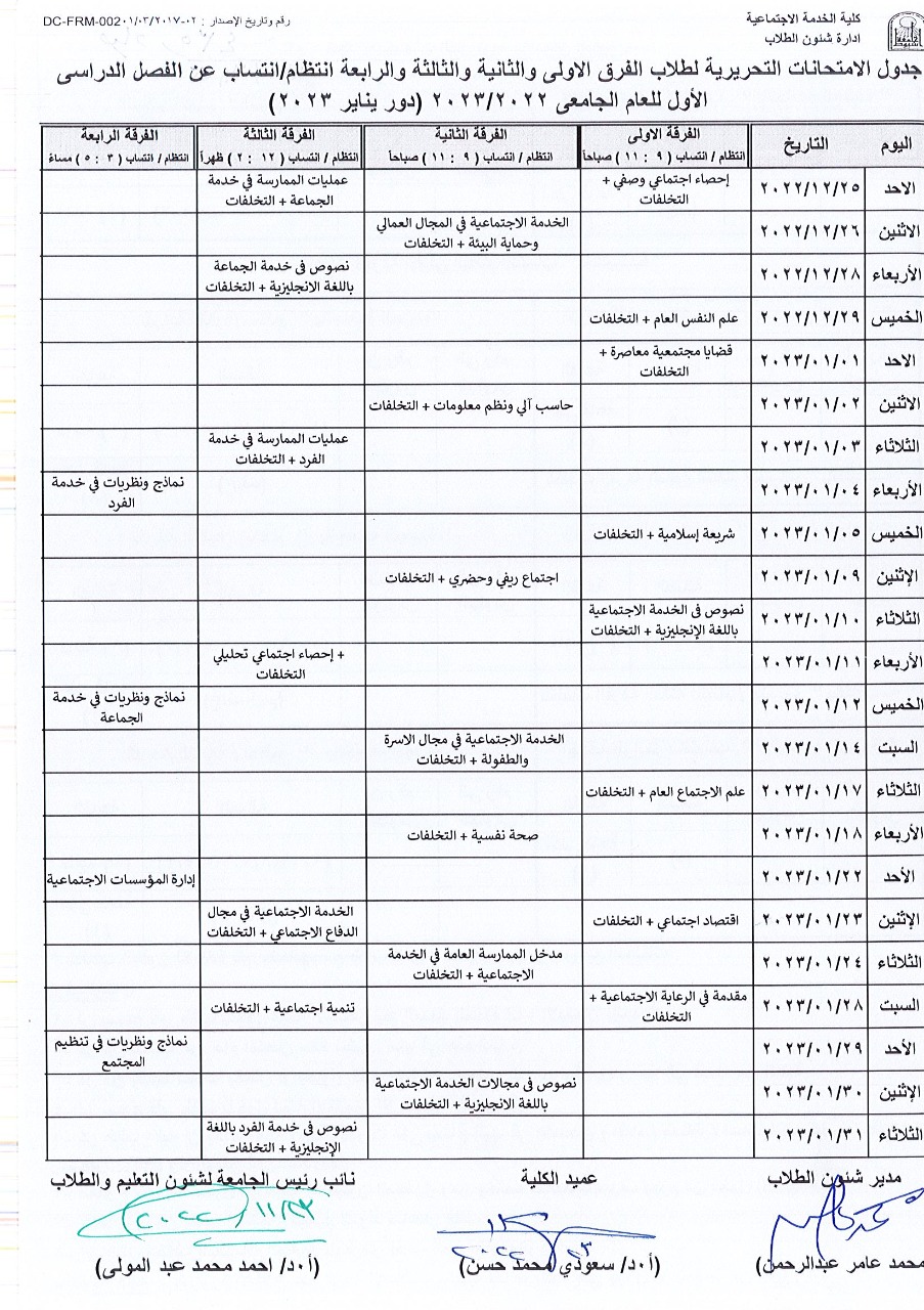 قوائم الفرقة الثانية انتساب للعام الجامعي 2022/ 2023