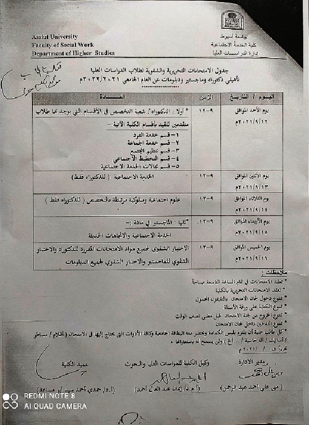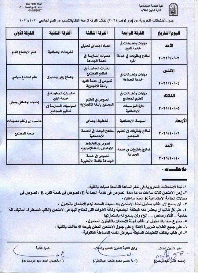 جدول الامتحانات التحريرية عن (دور نوفمبر) لطلاب الفرقة الرابعه انتظام/انتساب عن العام الجامعى 2020/2021م Read more about جدول الامتحانات التحريرية عن (دور نوفمبر) لطلاب الفرقة الرابعه انتظام/انتساب عن العام الجامعى 2020/2021م جدول الامتحانات التحريرية عن (دور نوفمبر) لطلاب الفرقة الرابعه انتظام/انتساب عن العام الجامعى 2020/2021م 25 أغسطس 2021