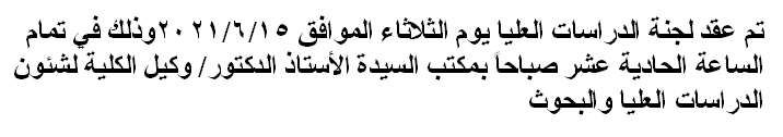 اجتماع لجنة الدراسات العليا Read more about اجتماع لجنة الدراسات العليا اجتماع لجنة الدراسات العليا 17 يونيو 2021