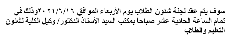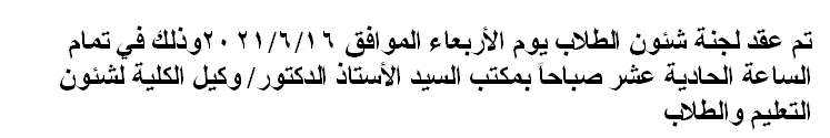 اجتماع لجنة شئون الطلاب Read more about اجتماع لجنة شئون الطلاب اجتماع لجنة شئون الطلاب 17 يونيو 2021