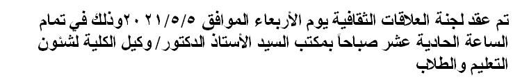 اجتماع لجنة العلاقات الثقافية Read more about اجتماع لجنة العلاقات الثقافية اجتماع لجنة العلاقات الثقافية 19 مايو 2021
