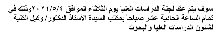 اجتماع لجنة الدراسات العليا Read more about اجتماع لجنة الدراسات العليا اجتماع لجنة الدراسات العليا 3 مايو 2021