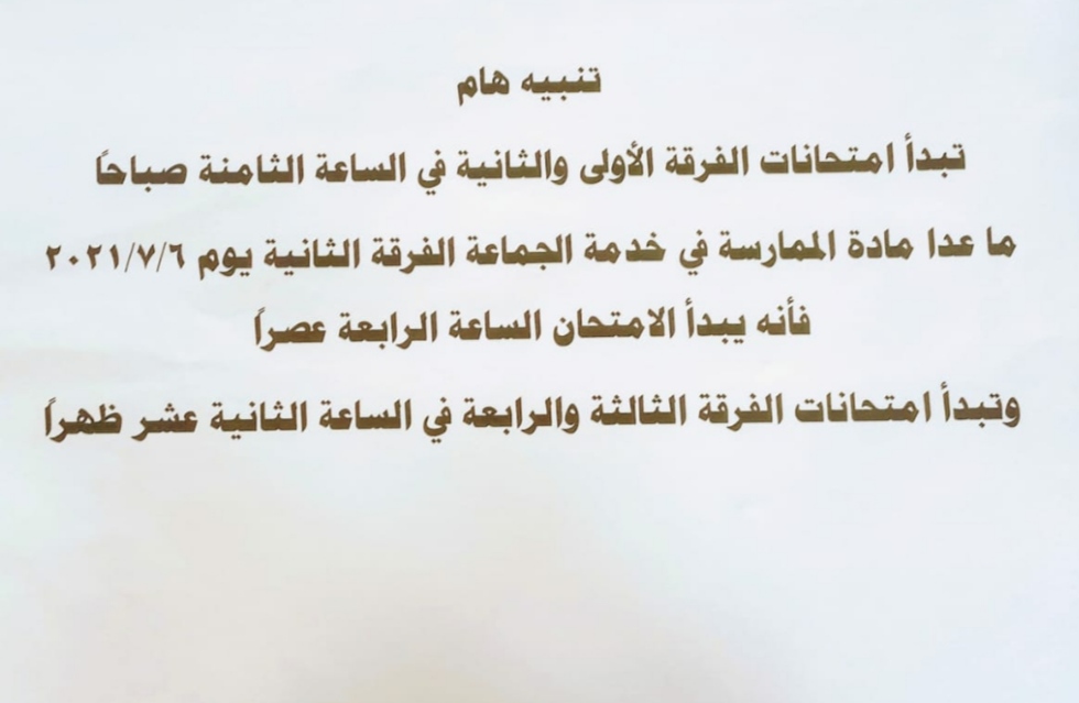 جدول جماعات المعسكر التدريبى لطلاب الفرقة الثالثة - اليوم الأول 25/7/2021 Read more about جدول جماعات المعسكر التدريبى لطلاب الفرقة الثالثة - اليوم الأول 25/7/2021 جدول جماعات المعسكر التدريبى لطلاب الفرقة الثالثة - اليوم الأول 25/7/2021 10 يونيو 2021