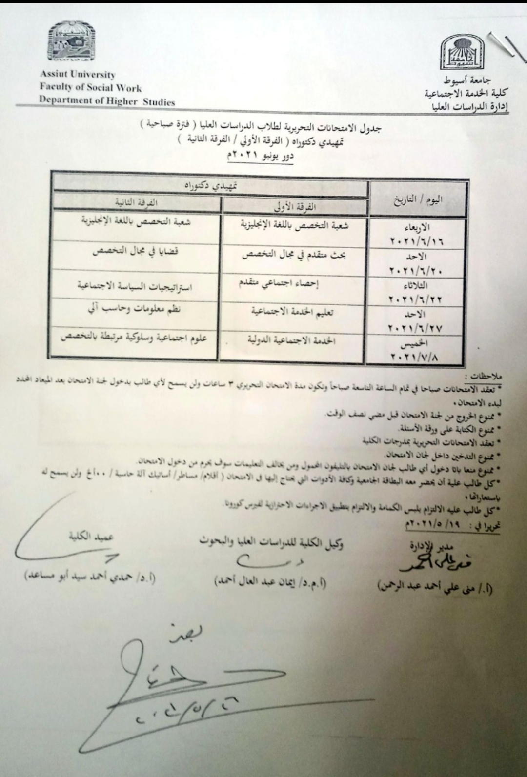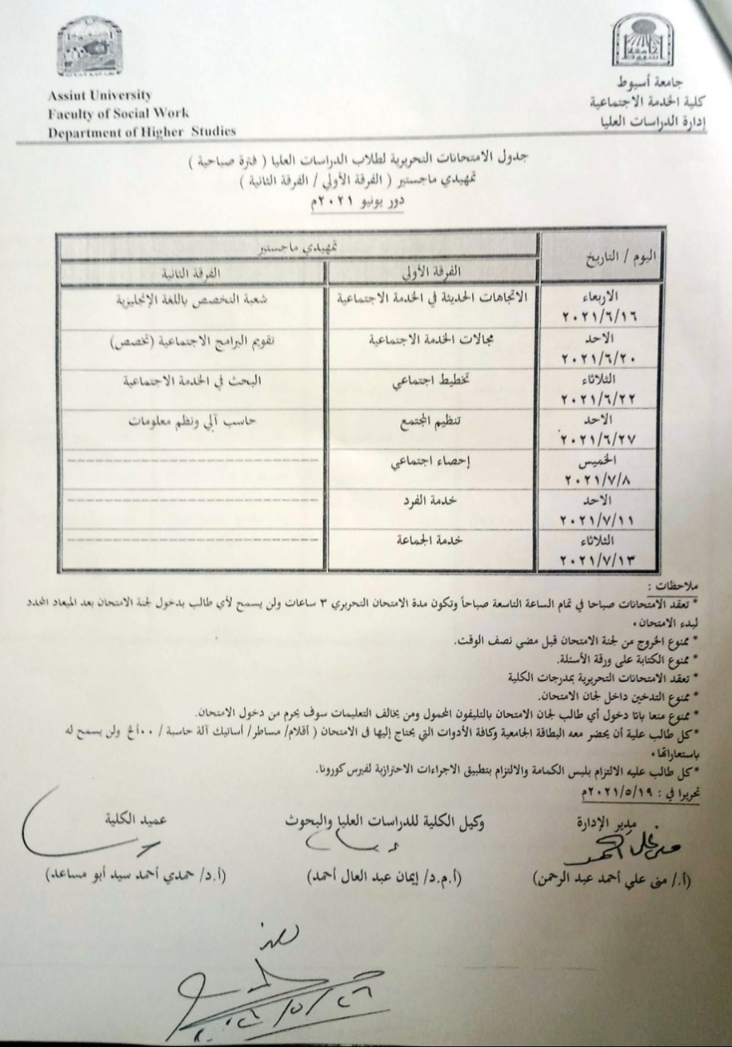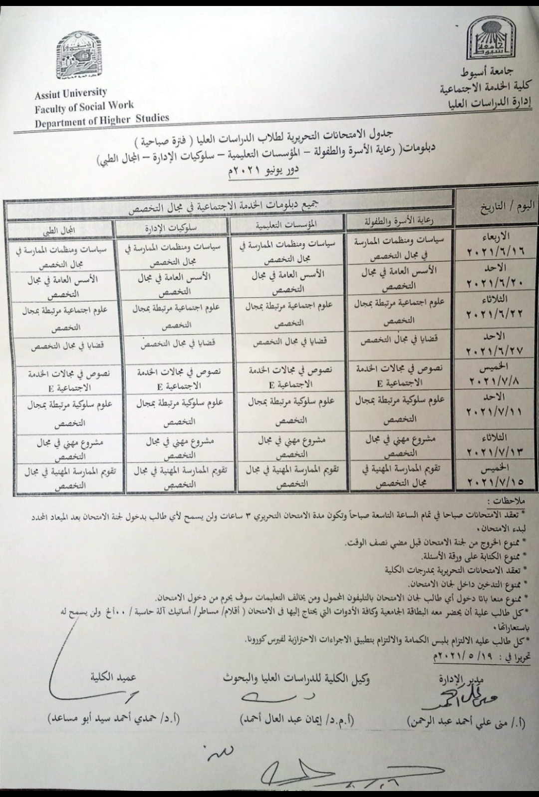 جدول الامتحانات التحريرية لطلاب الدراسات العليا دبلومات دور يونيو ٢٠٢١ Read more about جدول الامتحانات التحريرية لطلاب الدراسات العليا دبلومات دور يونيو ٢٠٢١ جدول الامتحانات التحريرية لطلاب الدراسات العليا دبلومات دور يونيو ٢٠٢١ 31 مايو 2021