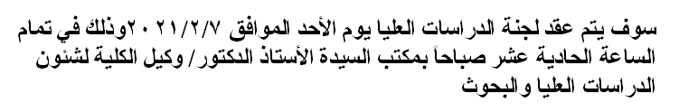 اجتماع لجنة الدراسات العليا Read more about اجتماع لجنة الدراسات العليا اجتماع لجنة الدراسات العليا تصنيف الخبر Alumni 1 فبراير 2021