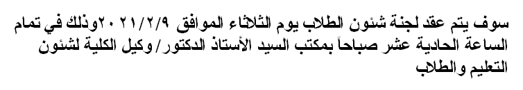 اجتماع لجنة شئون الطلاب Read more about اجتماع لجنة شئون الطلاب اجتماع لجنة شئون الطلاب تصنيف الخبر Alumni 11 فبراير 2021