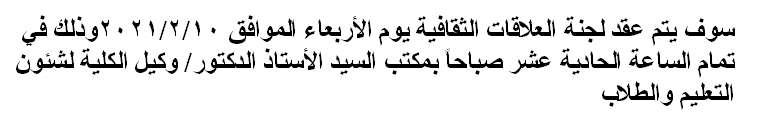 اجتماع لجنة العلاقات الثقافية Read more about اجتماع لجنة العلاقات الثقافية اجتماع لجنة العلاقات الثقافية تصنيف الخبر Alumni 4 فبراير 2021