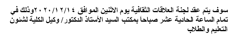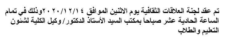 اجتماع لجنة العلاقات الثقافية Read more about اجتماع لجنة العلاقات الثقافية اجتماع لجنة العلاقات الثقافية 10 ديسمبر 2020