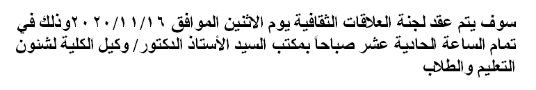 اجتماع لجنة العلاقات الثقافية Read more about اجتماع لجنة العلاقات الثقافية اجتماع لجنة العلاقات الثقافية 17 نوفمبر 2020