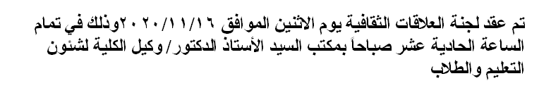 اجتماع لجنة العلاقات الثقافية Read more about اجتماع لجنة العلاقات الثقافية اجتماع لجنة العلاقات الثقافية 11 نوفمبر 2020