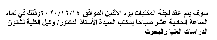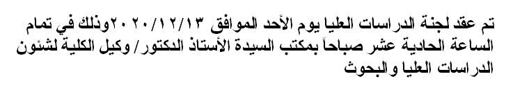 اجتماع لجنة الدراسات العليا Read more about اجتماع لجنة الدراسات العليا اجتماع لجنة الدراسات العليا 15 ديسمبر 2020