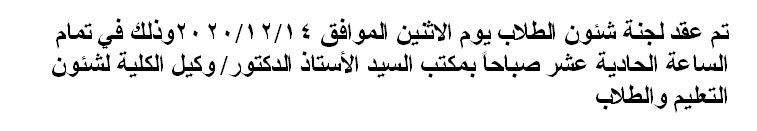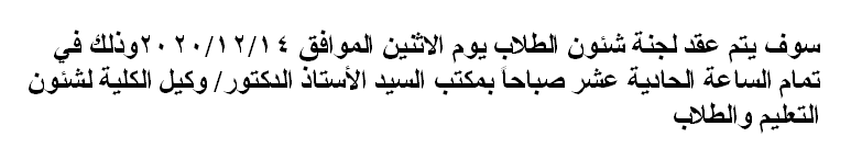 اجتماع لجنة شئون الطلاب Read more about اجتماع لجنة شئون الطلاب اجتماع لجنة شئون الطلاب 17 ديسمبر 2020