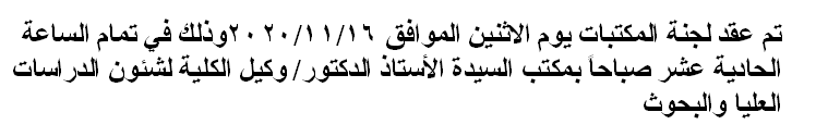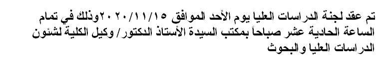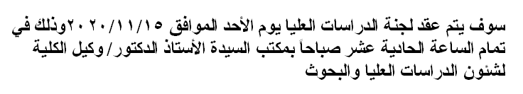 اجتماع لجنة الدراسات العليا Read more about اجتماع لجنة الدراسات العليا اجتماع لجنة الدراسات العليا 17 نوفمبر 2020