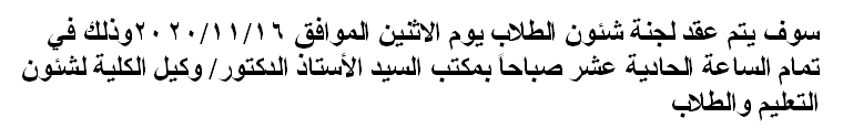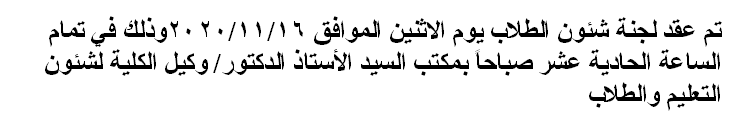 اجتماع لجنة شئون الطلاب Read more about اجتماع لجنة شئون الطلاب اجتماع لجنة شئون الطلاب 12 نوفمبر 2020