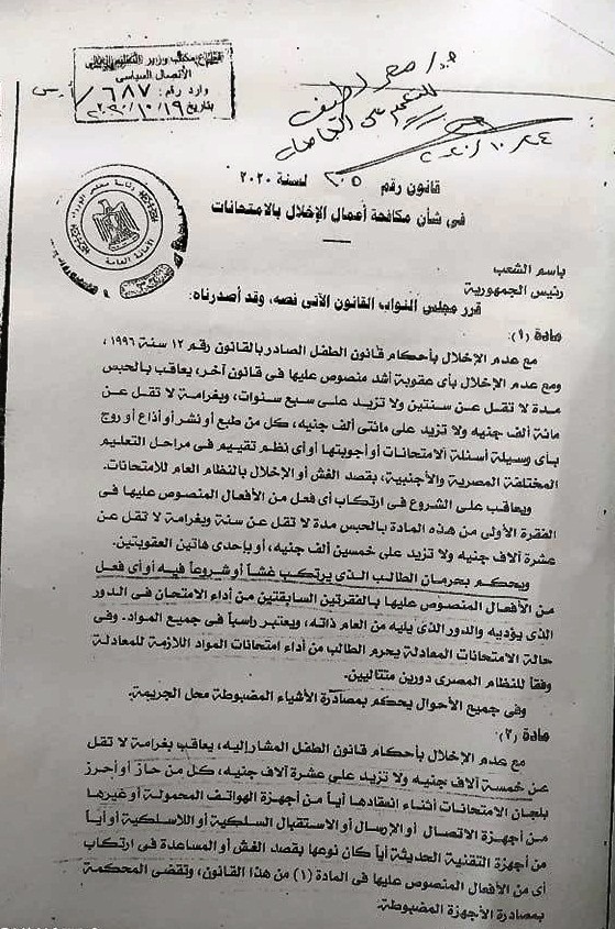 اعلان هام للطلاب بخصوص اعمال الغش والشروع فيه فى الامتحانات التحريرية Read more about اعلان هام للطلاب بخصوص اعمال الغش والشروع فيه فى الامتحانات التحريرية اعلان هام للطلاب بخصوص اعمال الغش والشروع فيه فى الامتحانات التحريرية 8 نوفمبر 2020