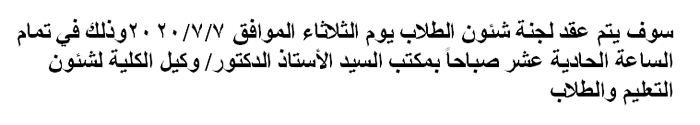 اجتماع لجنة شئون الطلاب Read more about اجتماع لجنة شئون الطلاب اجتماع لجنة شئون الطلاب 13 يوليو 2020