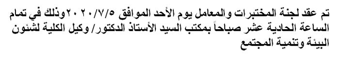 اجتماع لجنة المختبرات والمعامل Read more about اجتماع لجنة المختبرات والمعامل اجتماع لجنة المختبرات والمعامل 15 يوليو 2020