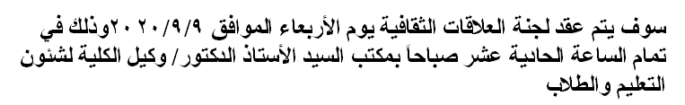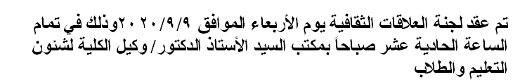 اجتماع لجنة العلاقات الثقافية Read more about اجتماع لجنة العلاقات الثقافية اجتماع لجنة العلاقات الثقافية 7 سبتمبر 2020