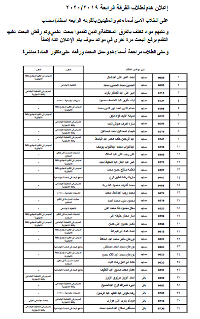 إعلان هام لطلاب الفـــرقة الرابعة 2019/2020 Read more about إعلان هام لطلاب الفـــرقة الرابعة 2019/2020 إعلان هام لطلاب الفـــرقة الرابعة 2019/2020 20 سبتمبر 2020