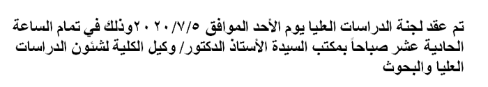 اجتماع لجنة الدراسات العليا Read more about اجتماع لجنة الدراسات العليا اجتماع لجنة الدراسات العليا 2 يوليو 2020