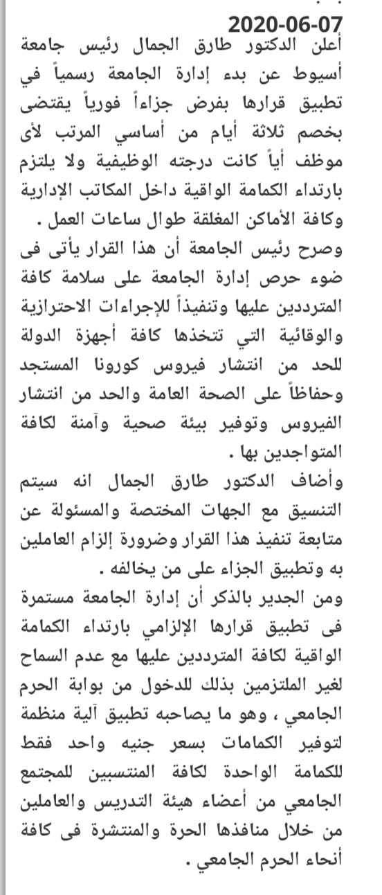 قرار بفرض جزاء فورى لمن لا يرتدى الكمامة Read more about قرار بفرض جزاء فورى لمن لا يرتدى الكمامة قرار بفرض جزاء فورى لمن لا يرتدى الكمامة 7 يونيو 2020