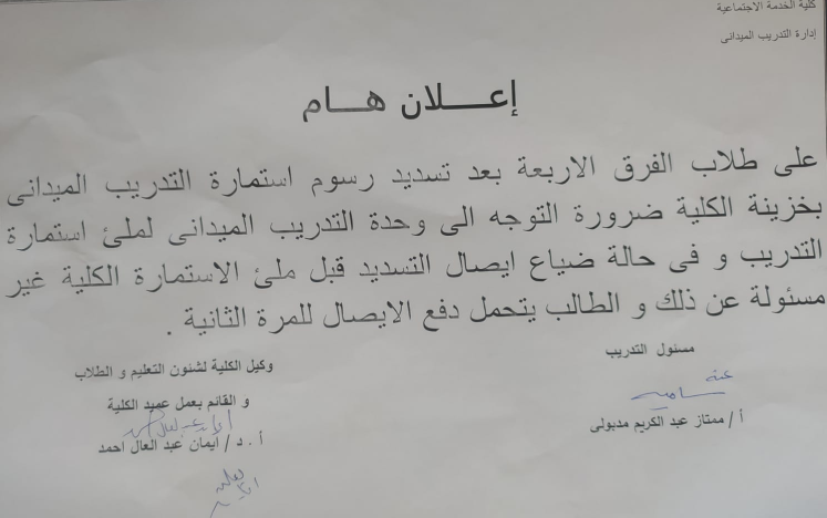 •• لو من الطلبة القدامى وعندك خطأ في التقدير أو الفرقة بتطبع ورقة بيان الحالة اللي في البوست هنا وتكتب بياناتك وتختمها من الكلية وترفعها ع لينك الالتماس، أو توديها نظم ومعلومات في المبنى الإداري.