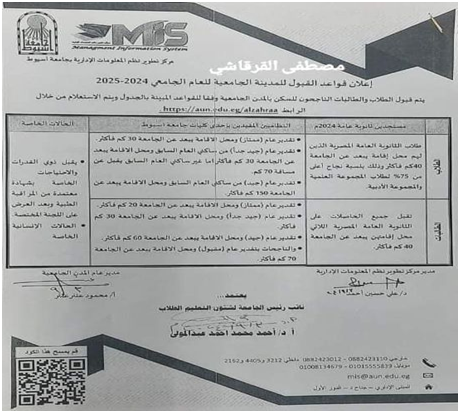 بعد نجاحك في الامتحان بتعمل بيان حالة من الكلية بالتقدير المعدّل وتوديه نظم ومعلومات في المبنى الإداري، ولو الشروط انطبقت عليك بتتقبل سكن عادي.