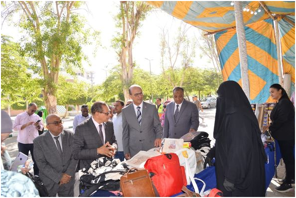الدكتور المنشاوي يتفقد المعرض التسويقي لمستلزمات الأسرة والطلاب بجامعة أسيوط