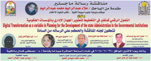 أطلقت الإدارة العامة لإدارة وتنمية المواهب، تحت رعاية الدكتور أحمد المنشاوي رئيس جامعة أسيوط، اليوم الأحد الموافق ٢٠ من أكتوبر؛ ملتقى "تنمية مهارات، وقدرات الأخصائيين الاجتماعيين"، والذي تمتد فعالياته خلال يومي ٢٠ ، ٢١ من شهر أكتوبر، وذلك بقاعة المناقشات بمركز المؤتمرات بالمبنى الإداري بالجامعة.